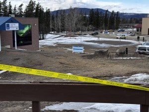 Police tape remains up at Tumbler Ridge Secondary School after the shooting on February 10th, 2026. (Ed Hitchins, Energeticcity.ca)