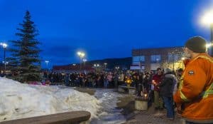 People attend a vigil to honour the victims of a mass shooting in Tumbler Ridge on Wednesday, February 11th, 2026. (THE CANADIAN PRESS/Brandon Bell)