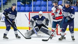 Flyers goaltender Landon Hatton takes a shot during game 2 (Street Legal photography, Facebook)
