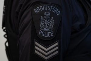 An Abbotsford Police patch is worn by an officer at RCMP “E” Division headquarters in Surrey, B.C., on Thursday, Feb. 19, 2026. THE CANADIAN PRESS/Ethan Cairns