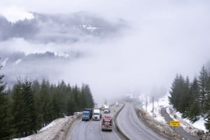 Vehicles are seen as they drive along the Coquihalla Highway Wednesday, January 19, 2022. THE CANADIAN PRESS/Jonathan Hayward