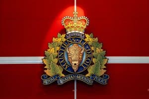 The RCMP crest hangs at a headquarters building in Surrey, B.C., on Wednesday, Feb. 11, 2026. THE CANADIAN PRESS/Ethan Cairns