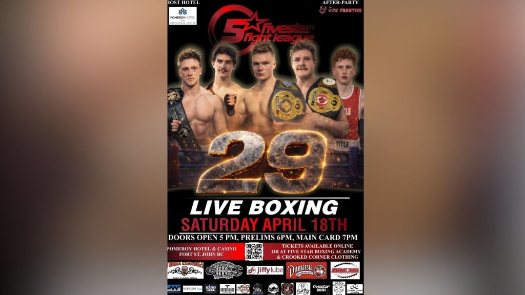 Fivestar Fight League will host its 29th card on Saturday, April 18th, at Fort St. John’s Pomeroy Hotel and Conference Centre.