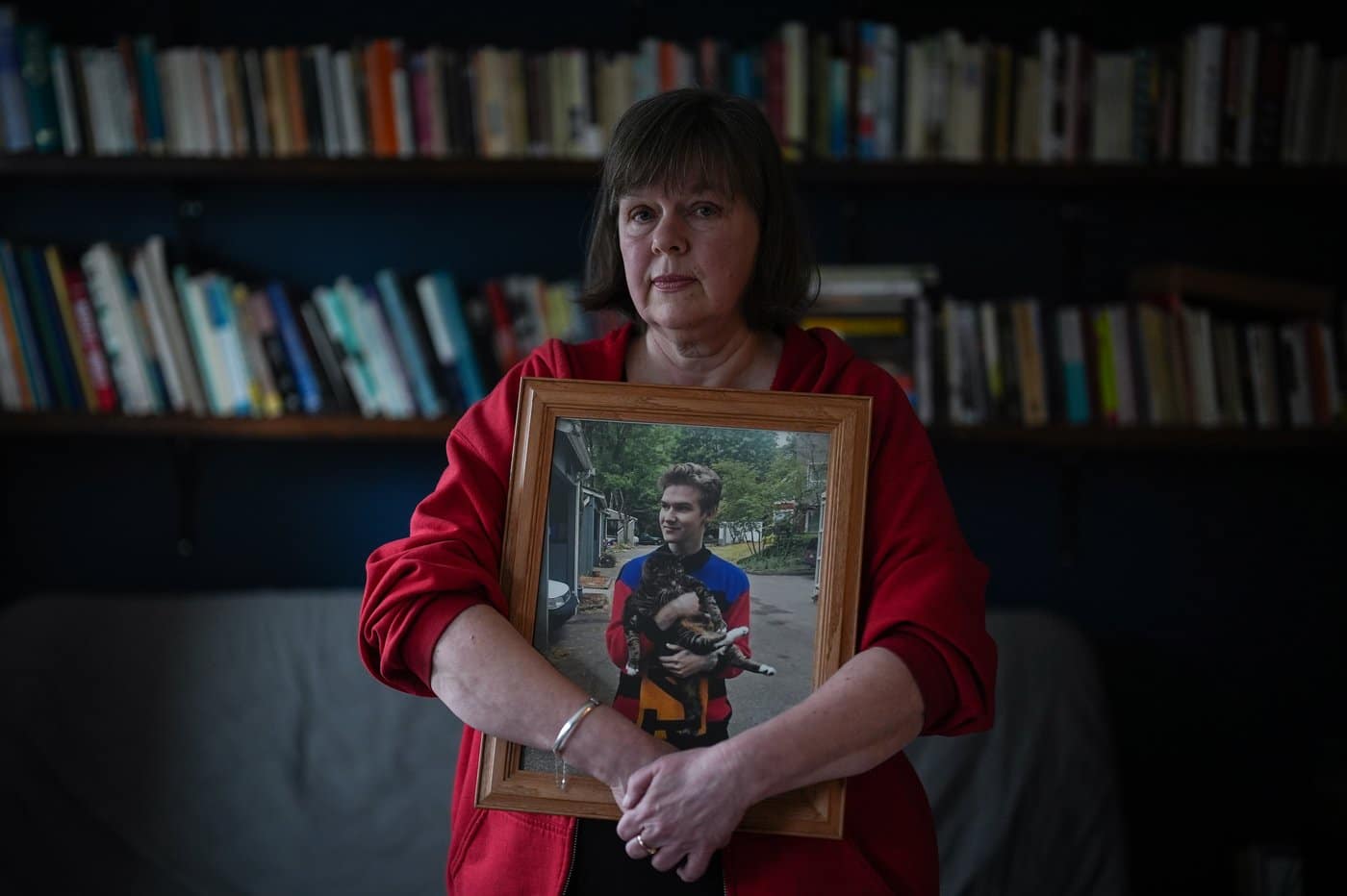 Maria Rantanen holds a photo of her late son Michael Rantanen, who died of a fentanyl overdose in 2022 at the age of 25, while posing for a photograph in Vancouver, on Wednesday, March 18, 2026. THE CANADIAN PRESS/Darryl Dyck