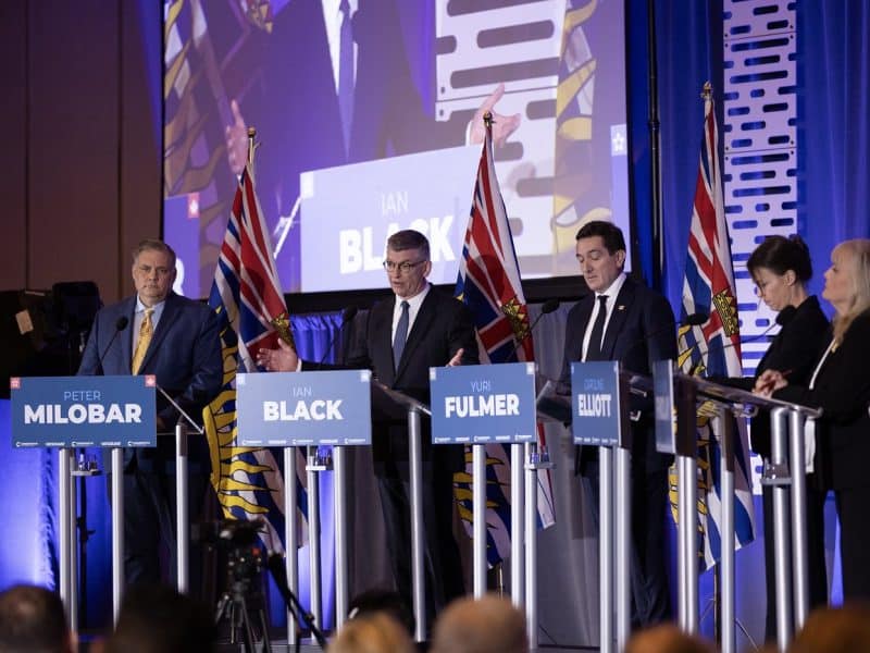 K’omoks First Nation Chief Nicole Rempel speaks at an event to mark the tabling of treaty implementation legislation, as B.C. Premier David Eby, right, and Spencer Chandra Herbert, Minister of Indigenous Relations and Reconciliation look on, in Victoria, on Tuesday, April 14, 2026. THE CANADIAN PRESS/Wolfgang Depner
