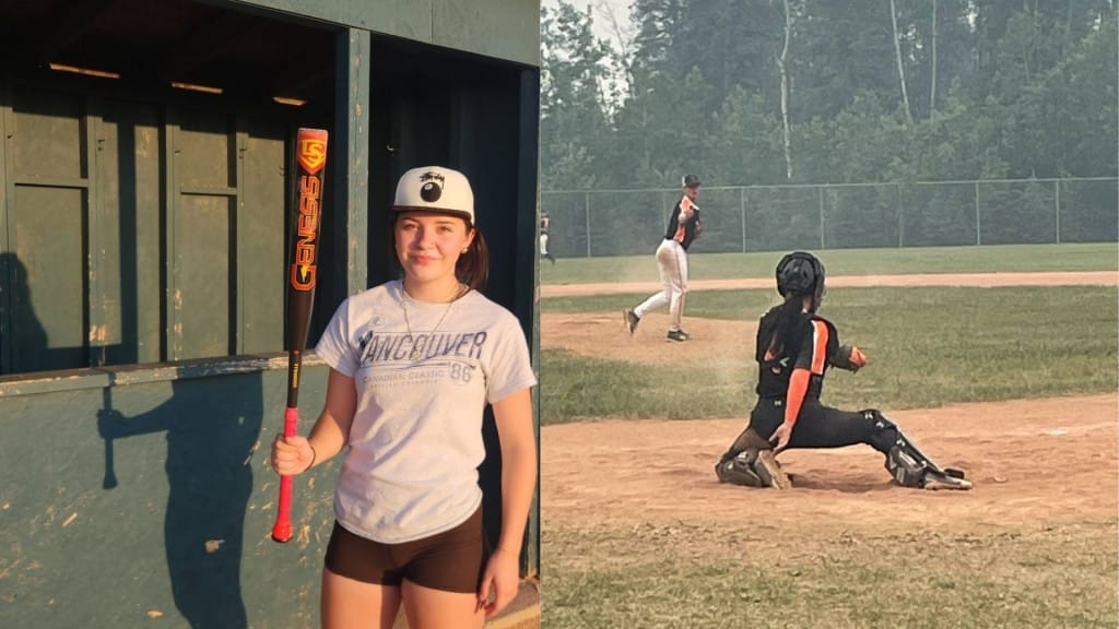 Zoe Vermette is a 16-year-old high school student who plays catcher and third base with North Peace Minor Baseball.