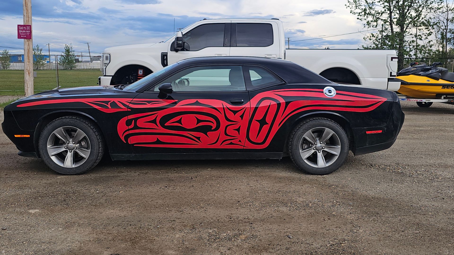 A car belonging to Dan Prince, a member of Haisla Nation in Kitimat who adorned his Dodge Challenger with First Nations-inspired decals, was vandalized on May 12th.