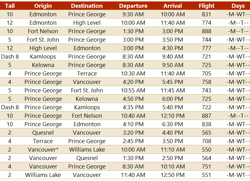 Central Mountain Air changes flight schedule