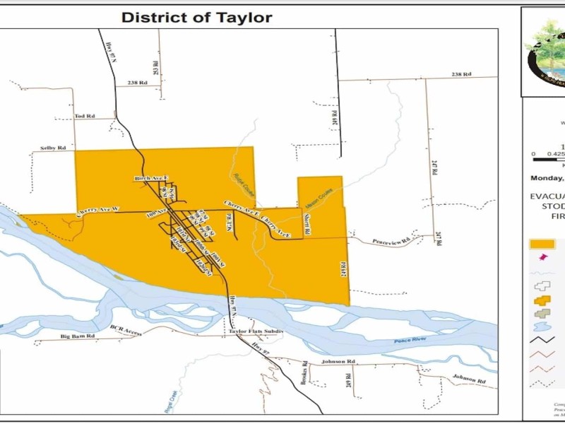 The District of Taylor has placed all properties within the district on Evacuation Alert due to the Stoddart Creek wildfire.