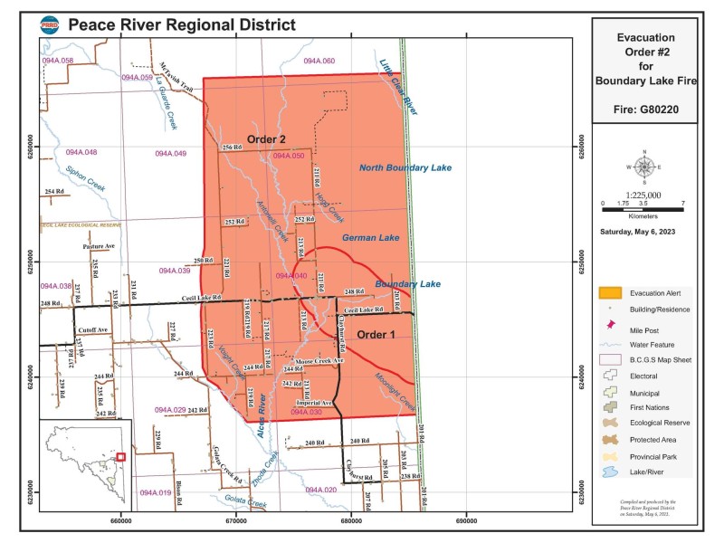 The Peace River Regional District has issued an evacuation order for 32 properties in the Goodlow and Boundary Lake area.