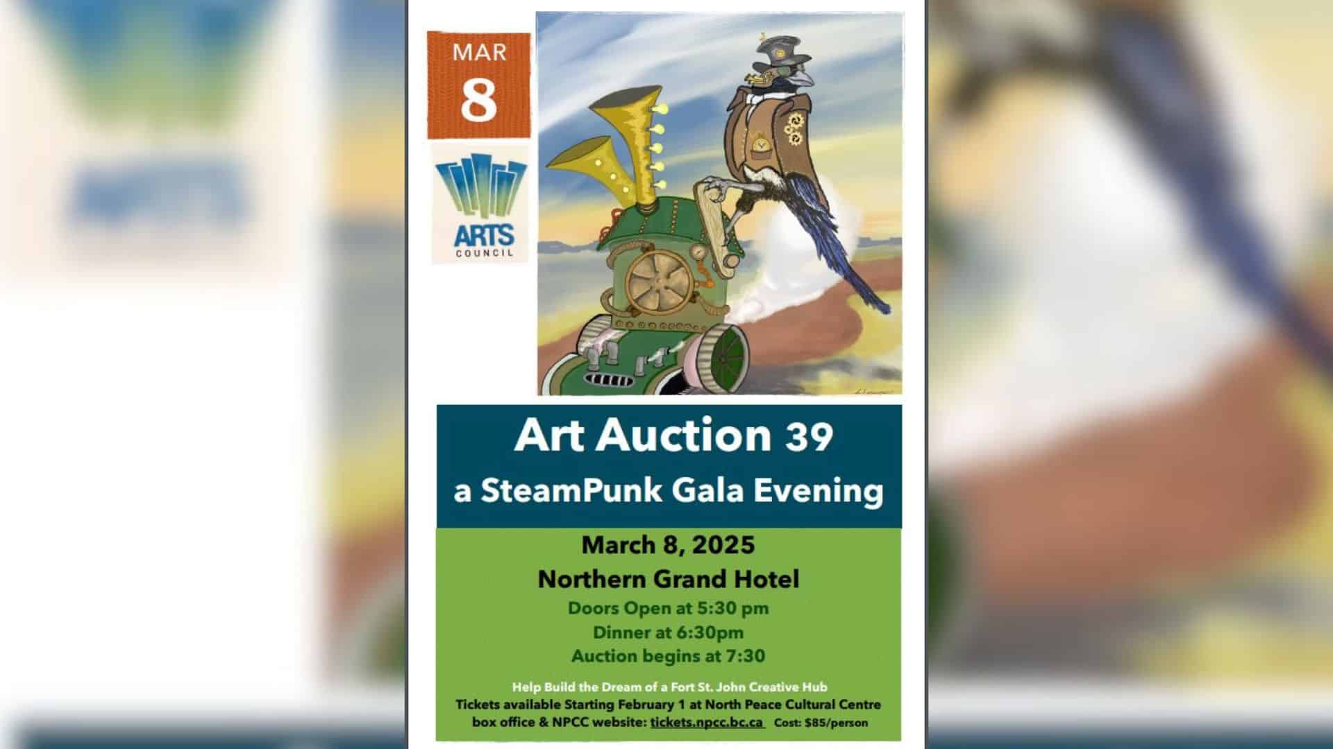 A 39th Fort St John Art Auction is to be held by the Flying Colours Artists’ Association, FSJ Arts Council, the North Peace Cultural Centre and Peace Gallery North.