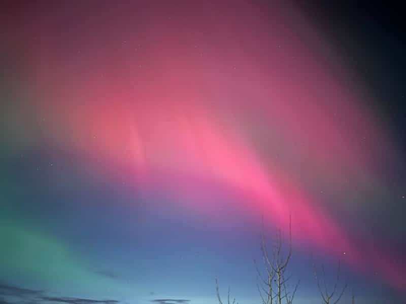 The northern lights were seen in the Peace region on November 11th with a rarely-seen red/pink hue, and could be seen tonight (November 12th), weather permitting.