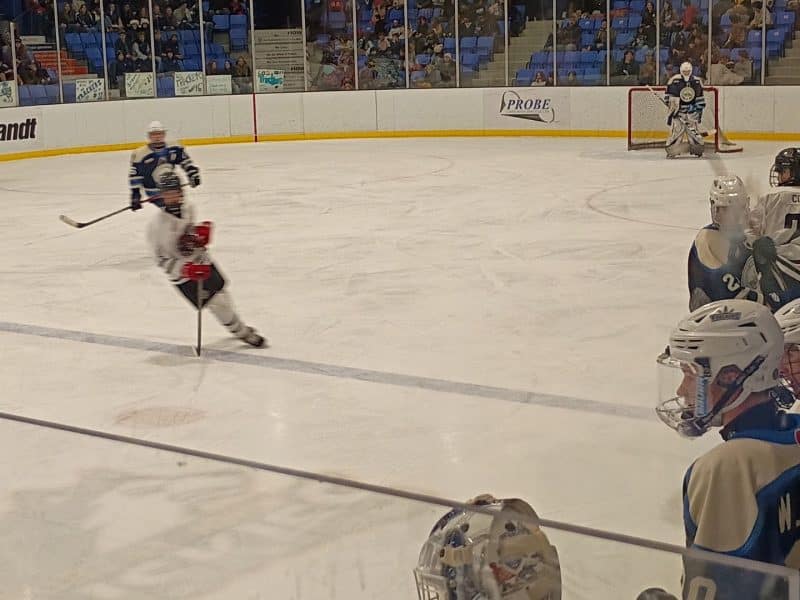 The U-18 North East BC Trackers still hosted their annual Christmas contest on December 19th versus the Whitecourt Wolverines at the North Peace Arena.