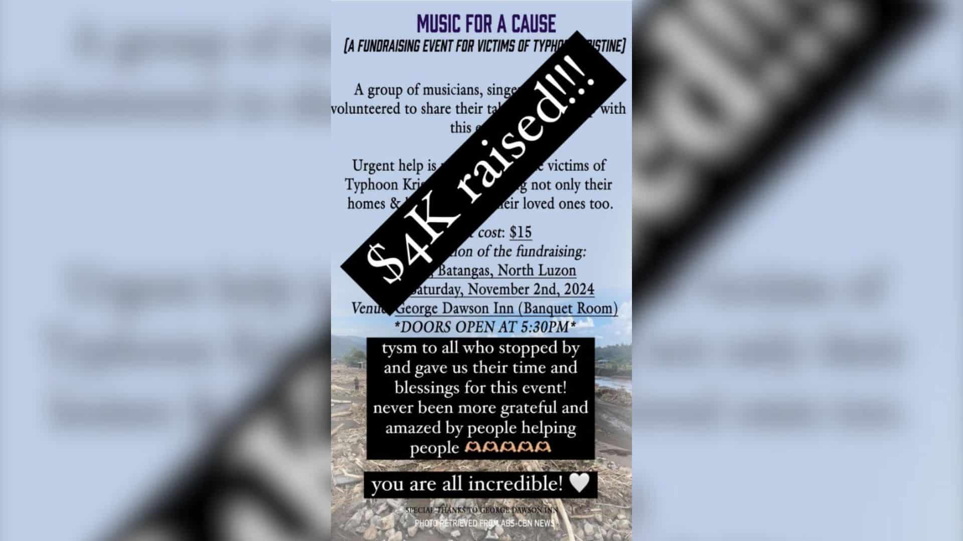 This weekend, Dawson Creek is set to host a charity concert for the victims of a severe tropical storm in the Philippines.