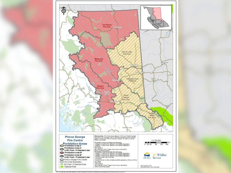 As of noon on Thursday, category one fires will be prohibited across the Prince George Fire Centre's Vanderhoof, Fort St. James, Mackenzie and Fort Nelson fire zones.