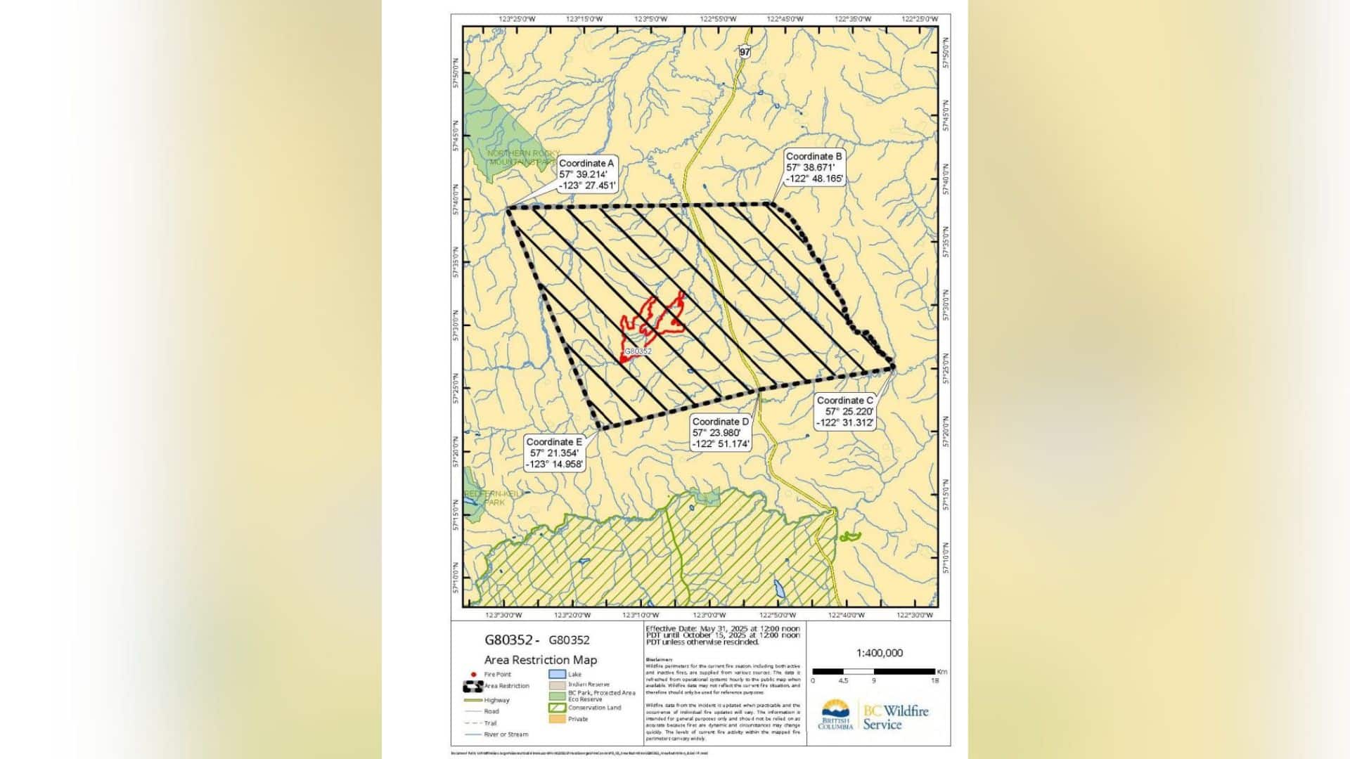 An area restriction has been issued because of the ongoing blaze in the Fort St. John fire zone.