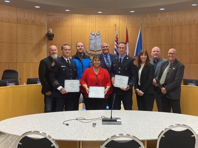 Deputy Chief Dan Simpson, Captain Marco D’Agostino and Lieutenant Alyn Stobbe received Long Service Awards during the regular council meeting on Tuesday, October 14th.